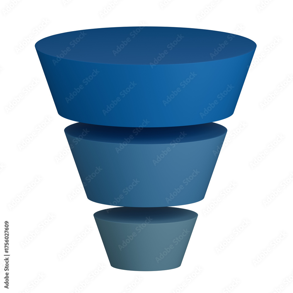 3D blue funnel chart element representing sales and marketing process or business conversion stages transparent background isolated render #1756027609