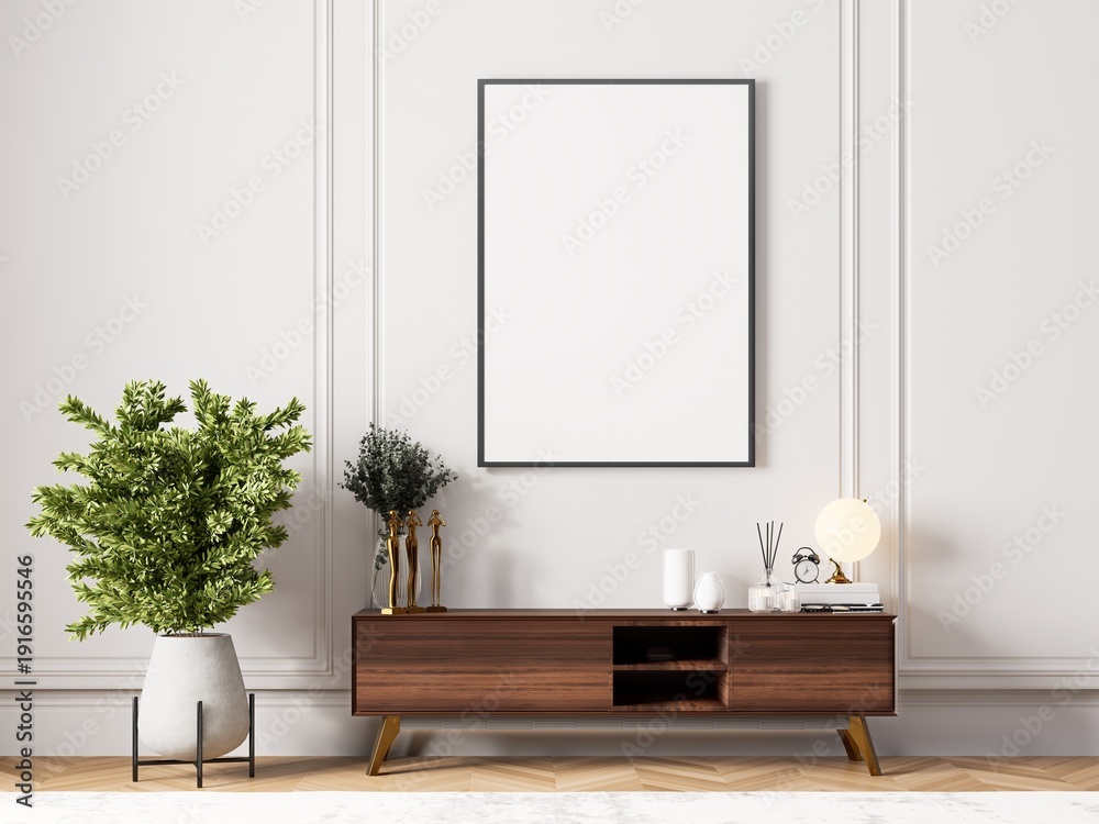 3D render of clean beautiful interior, Ideal for showcasing artwork, prints, posters, or interior design and decor concepts. #1916595546