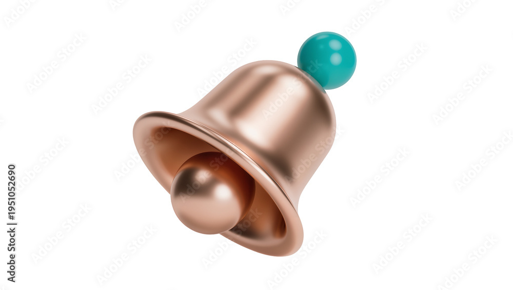 3D rendered rose gold notification bell with a vibrant teal sphere, isolated modern icon for digital alerts, reminders, and app interfaces #1951052690