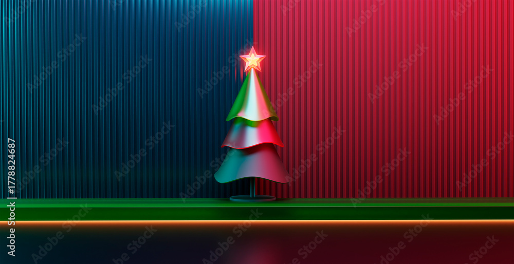 3d rendering modern christmas tree with neon star against colorful wall #1778824687