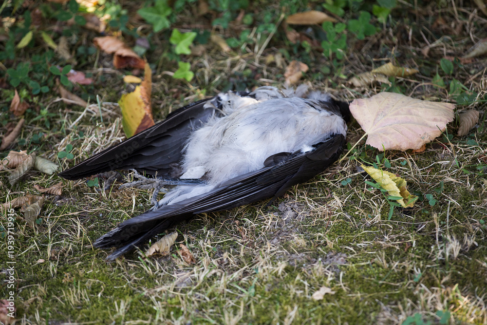 Dead black bird, dead crow in the grass #1939719915