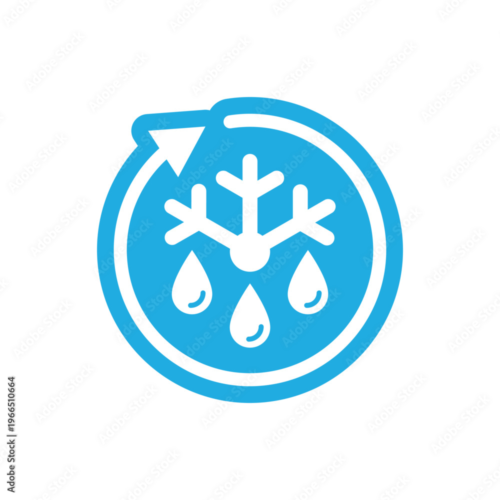 Defrost line icon set, label, logo, badge, sign, symbol, sticker, isolated vector illustration. Frozen food label product. Freezer control, auto cooling, conditioning, snowflake, rotation arrow icons. #1966510664