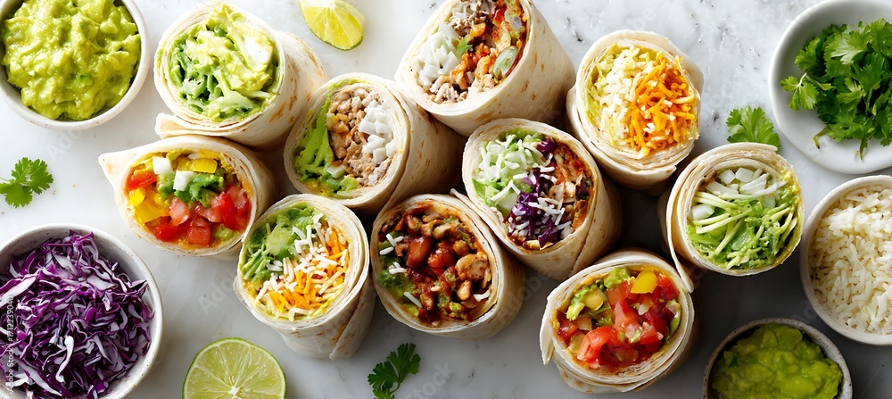 Delicious burrito wraps recipe ideas: healthy mexican food with chicken beef vegetables and fresh ingredients #1712239040