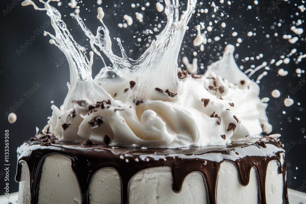 Delicious Chocolate Cake With Whipped Cream Splash #1133369388