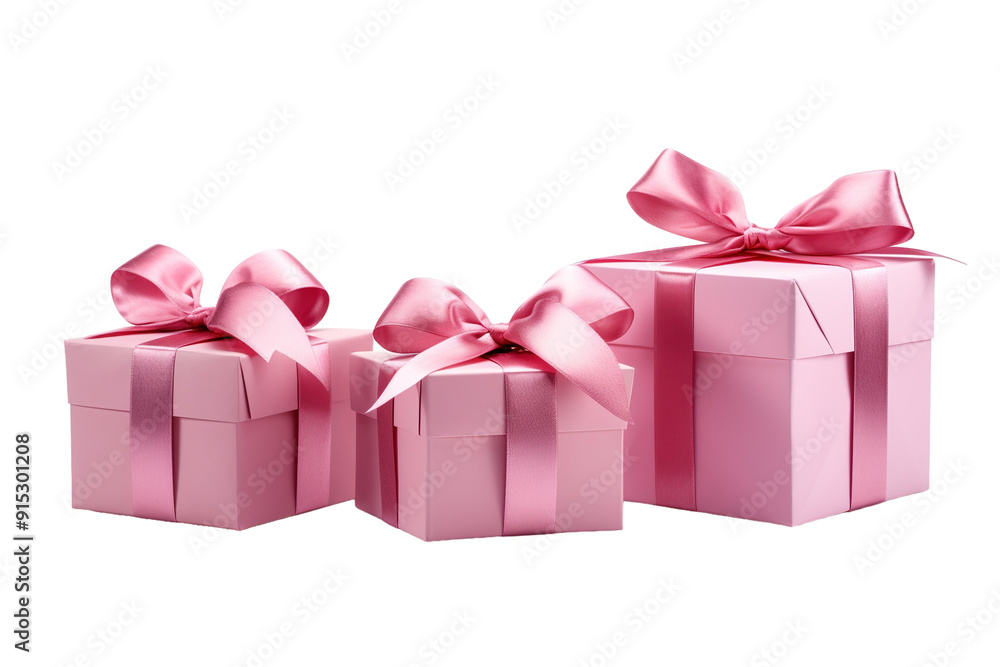 Delightful Pink Gift Boxes Adorned With Ribbons for Special Celebrations and Joyous Occasions on Transparent PNG Background. #915301208