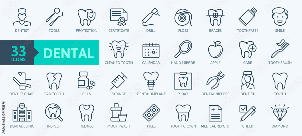 Dental clinic elements - thin line web icon set. Outline icons collection. Simple vector illustration. #294992396