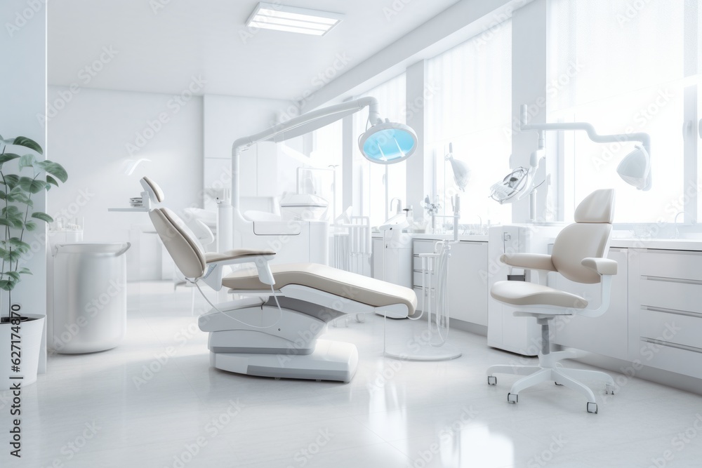 Dentist office white interior with medical equipment #627174870