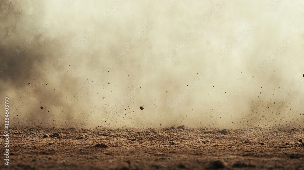 Desert dust cloud, race track background, off-road vehicle action, extreme sports #1234503777