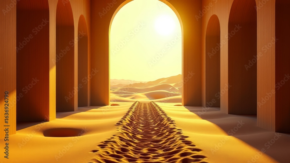 Desert landscape through arches in harsh sunlight #1636924790