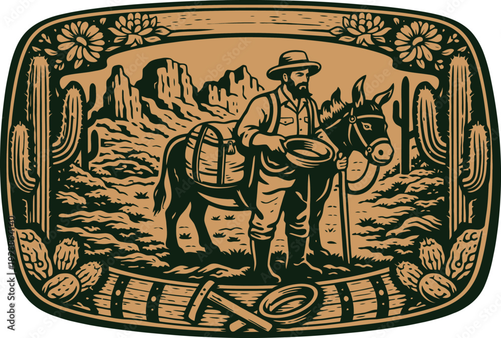 Desert Prospector Mule Vintage Belt Buckle Vector #1923834140