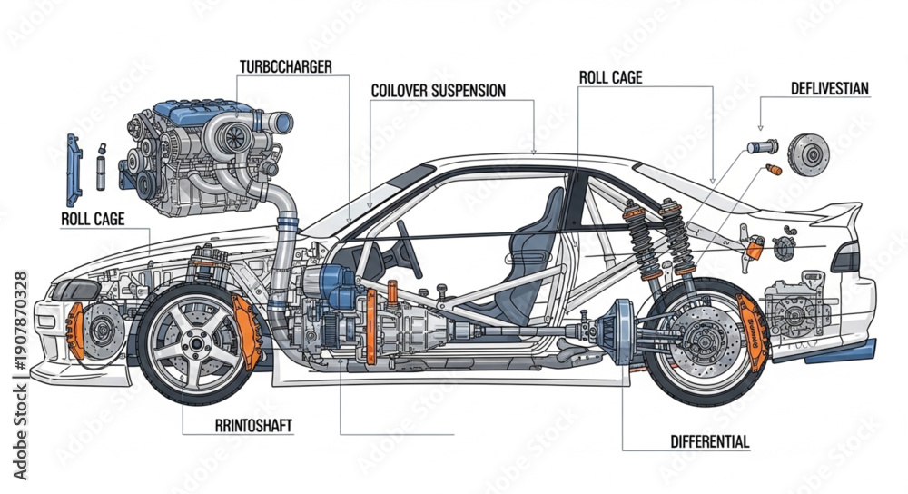 Detailed Car Engine and Chassis Diagram. #1907870328