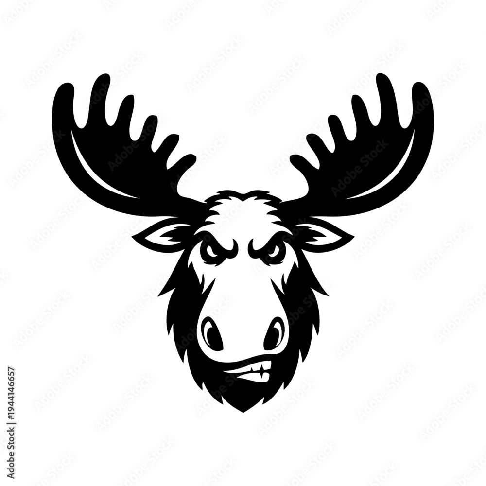 Dibujo sencillo con líneas de la cabeza de un alce enojado #1944146657