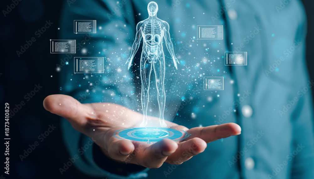 Digital Human Body Hologram in Hand Advanced Medical Technology, AI Diagnostics, Future Healthcare, and Innovative Health Solutions Concept #1873410829