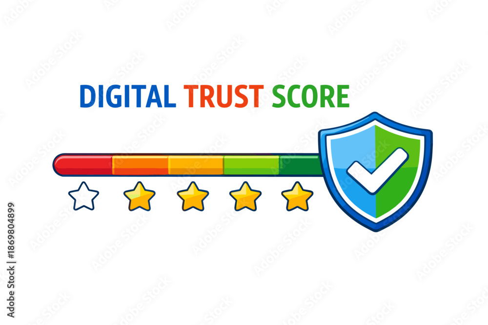 Digital trust score indicator with shield and stars rating #1869804899