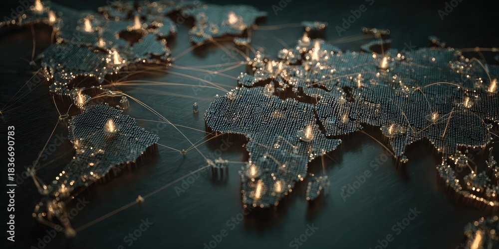 Digital world map with illuminated cities and network connections #1836690783