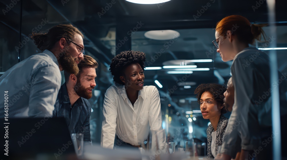 Diverse professionals collaborate at a table in modern office boardroom #1645170074
