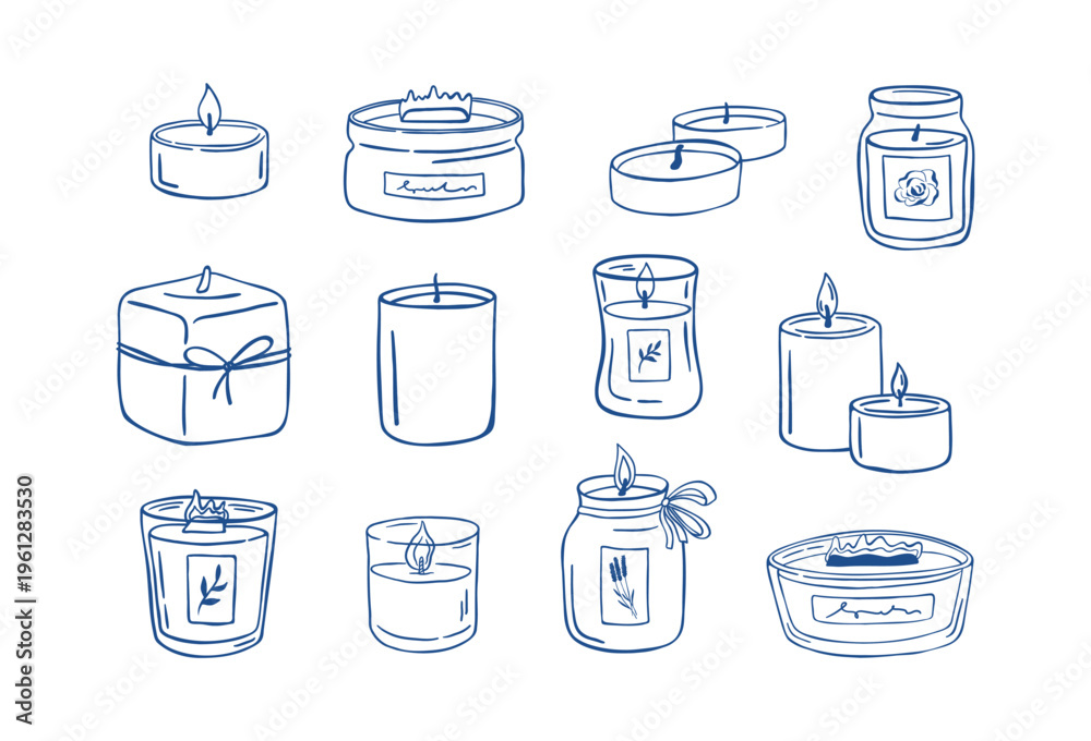 Doodle set of cozy aroma candles. Hand drawn vector illustration for spa, home decor and relaxation #1961283530