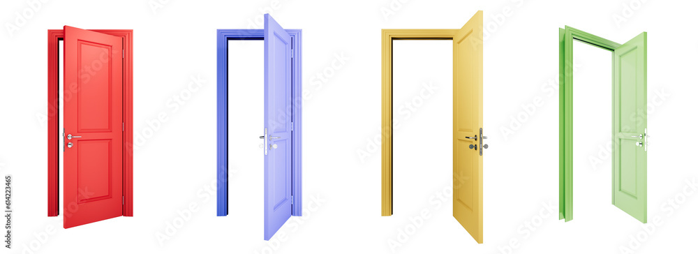 door isolated on white background PNG 3d rendering . red purple yellow green door #614223465