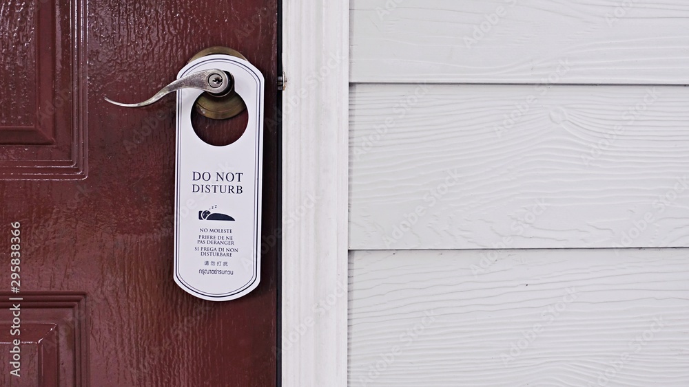 door knob hanging with message note, communication sign message, do not disturb #295838366