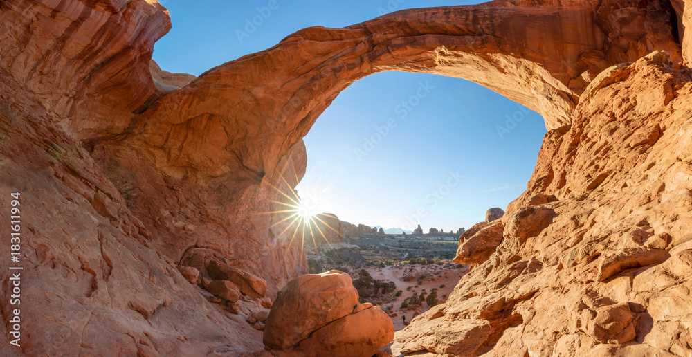 Double Arch is a pair of natural arches in Arches National Park in the southern part of Grand County, Utah, USA, and is one of the park's most famous attractions. It is located near the town of Page. #1831611994