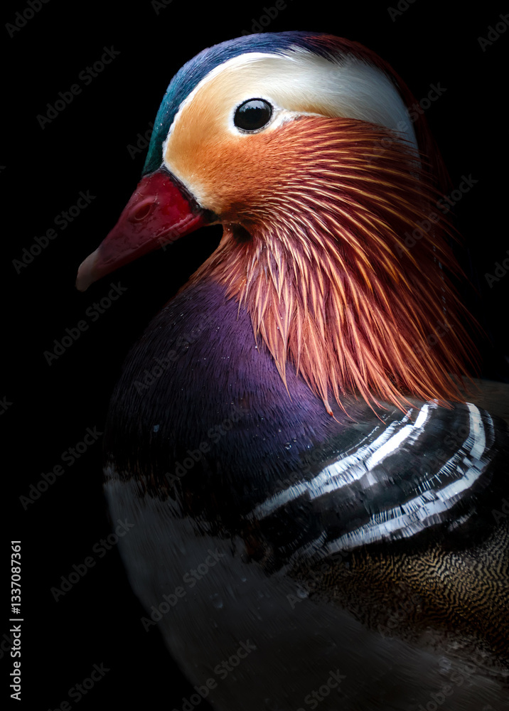 Dramatic low-key Portrait of a Mandarin Duck #1337087361