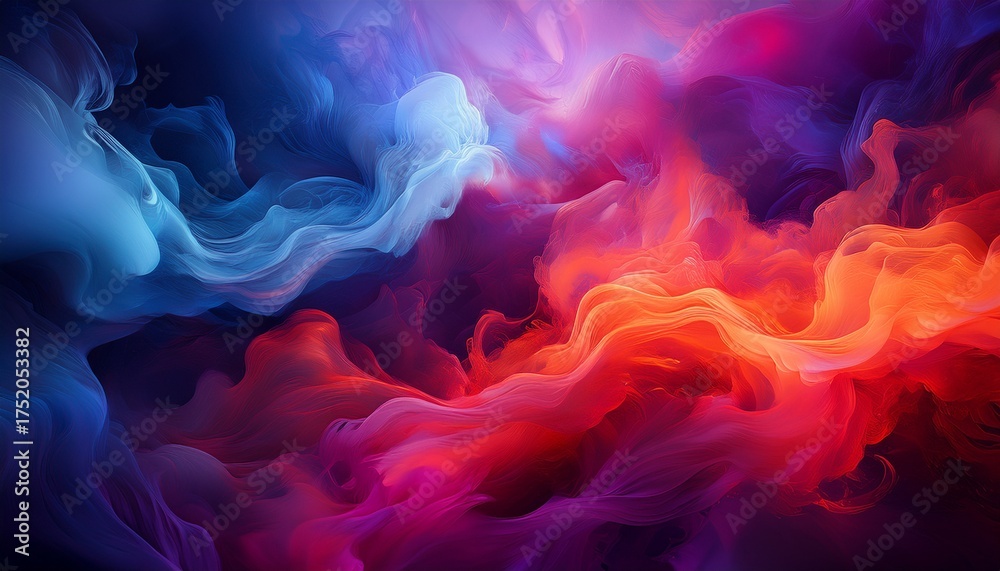 dramatic smoke and fog in contrasting vivid red blue and purple colors vivid and intense abstract background or wallpaper #1752053382