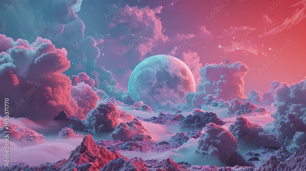 Dreamy Landscape with a Full Moon and Pink Clouds #1035371770