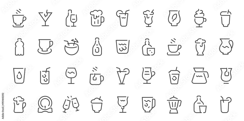 Drinks line icons set. Beverage and cafe outline vector symbols collection #1954642012