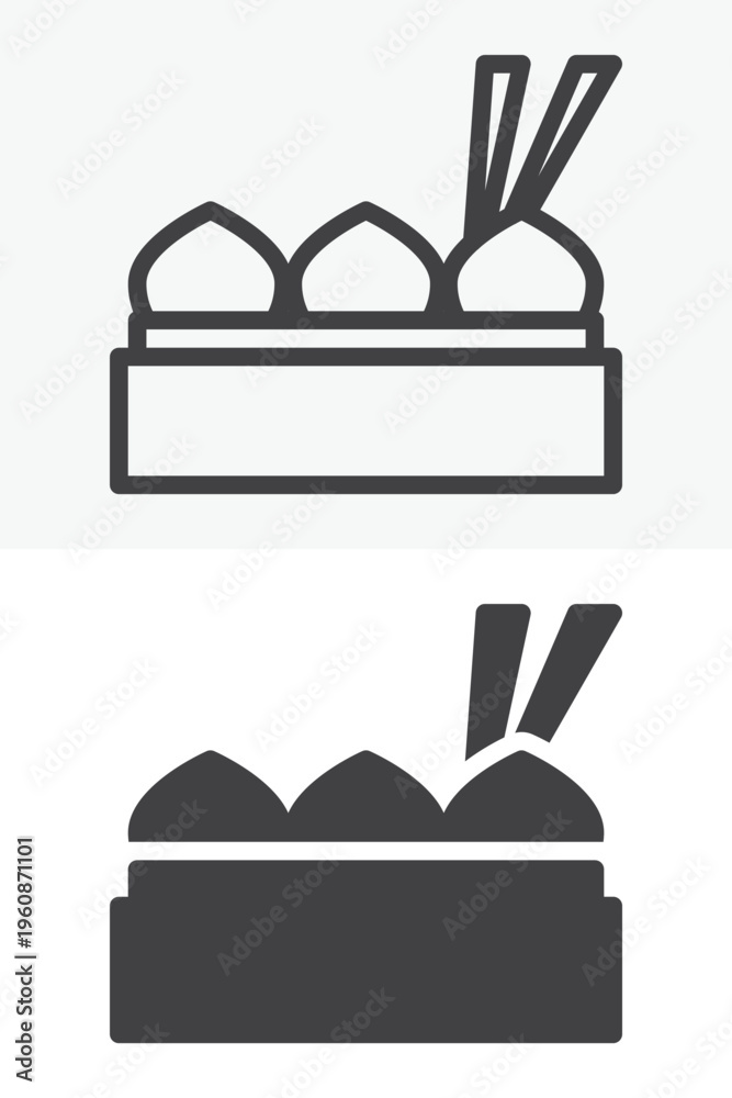 Dumplings with chopsticks icon in line and solid style. Outline and solid vector icon with editable stroke. Asian food sign symbol, dumpling icon. #1960871101