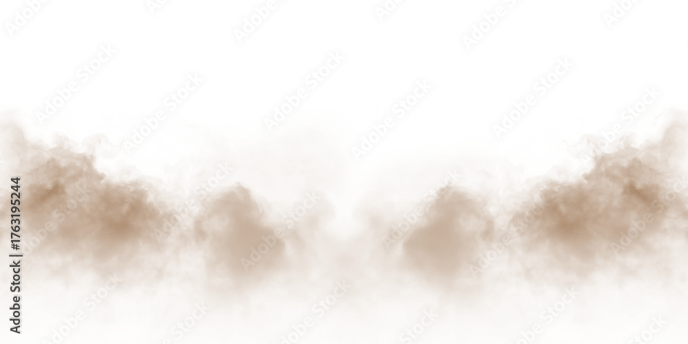 Dust sand soil smoke cloud particles isolated on transparent white background. Brown sandstorm smog sand dust explosion rising. Design elements for Compositing, covering, overlay, PNG #1763195244