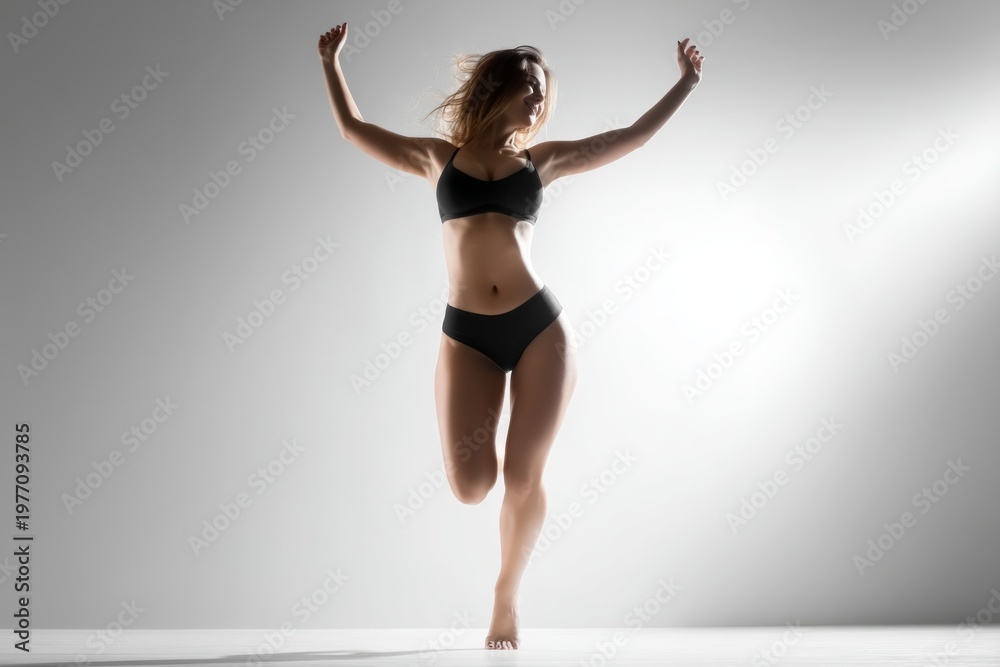 Dynamic Silhouette of Woman Mid Jump During Workout in Studio with Dramatic Lighting #1977093785