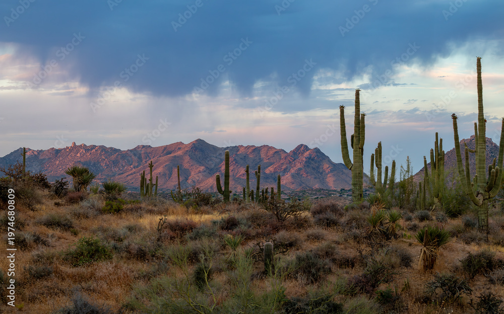 Early Morning Wide Ratio View Of The McDowell Mountains In North Scottsdale AZ #1974680809