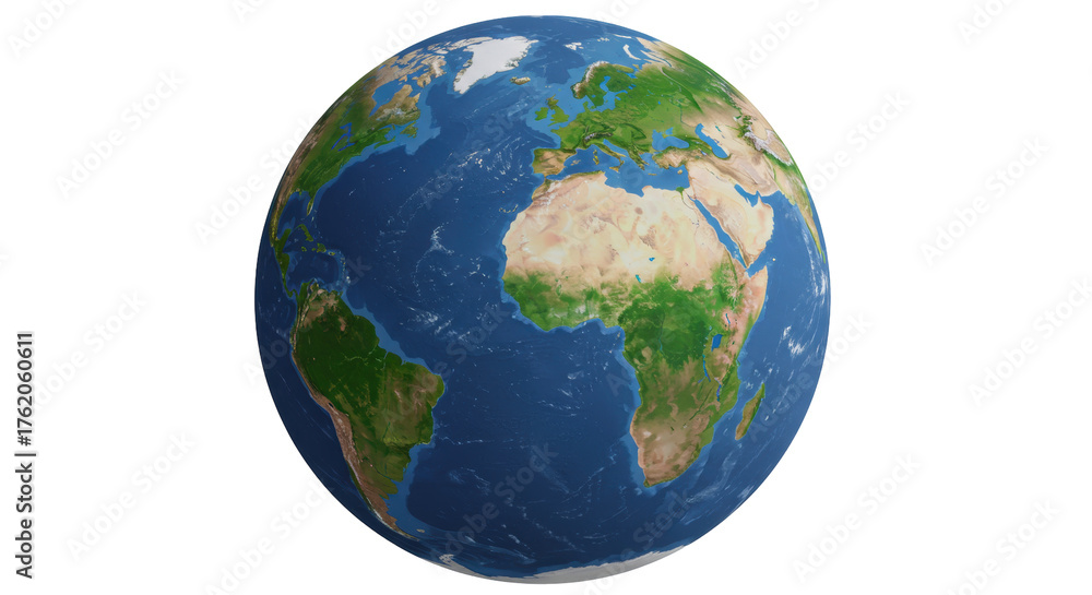 Earth globe showing continents and oceans isolated, realistic 3D rendering PNG for geography, science, and environmental studies #1762060611