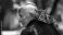 Elderly man cat shoulder grey haired man wearing cap outdoor portrait intimate companion #1940300211