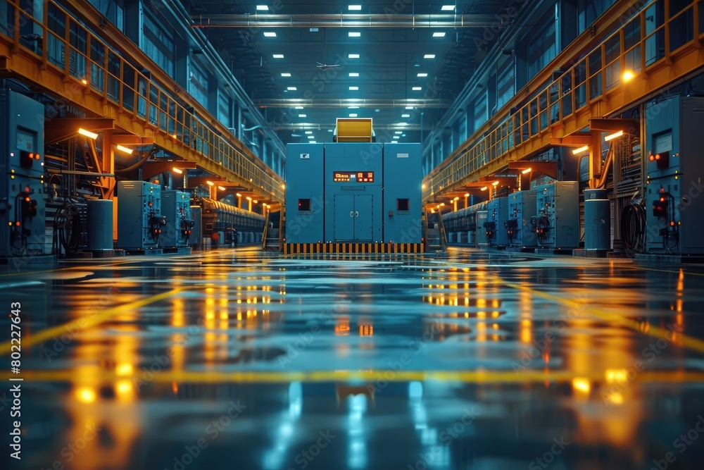 Electric power transmission lines. High voltage switchgear and equipment in front of power plant. #802227643
