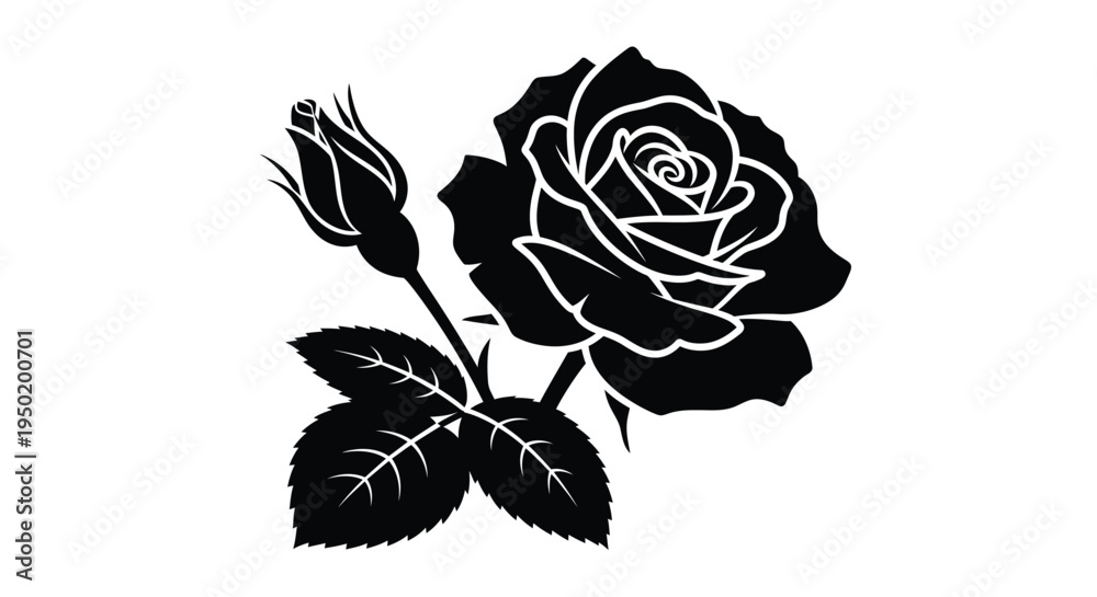 Elegant black rose illustration with a budding companion a striking silhouette #1950200701