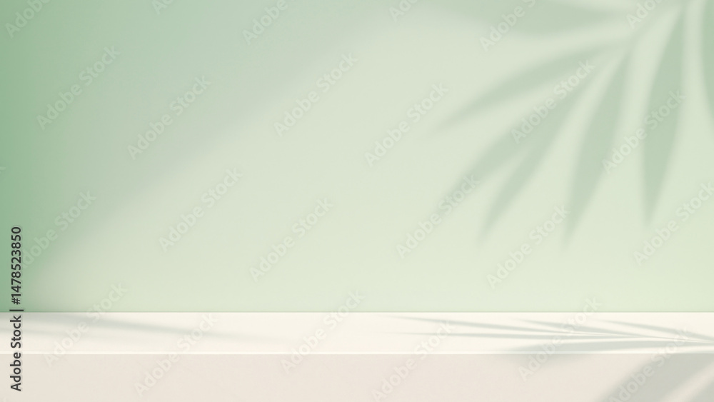• #1478523850 Elegant contemporary natural light shadow on green wall and table top for organic beauty cosmetic and skin care product display background