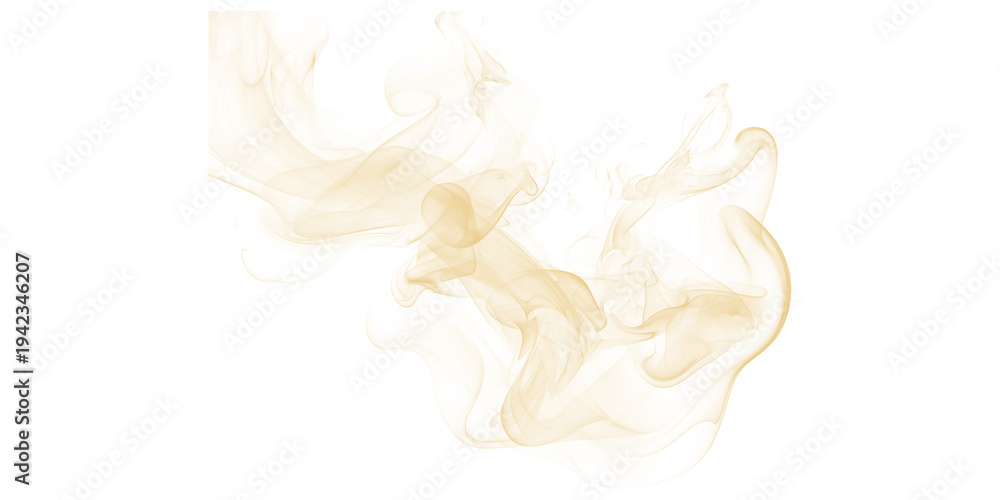 Elegant golden smoke trails swirl gracefully against a solid black background creating an abstract vapor motion textures #1942346207
