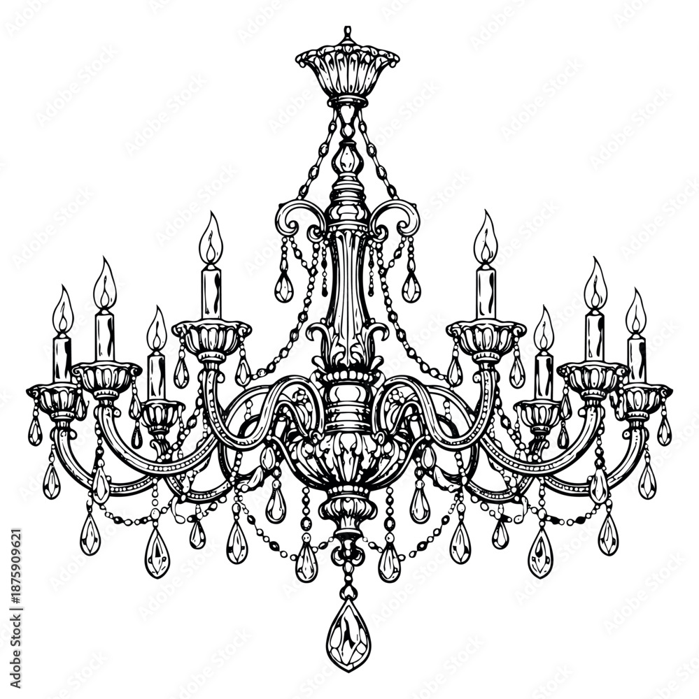 Elegant hand drawn illustration of a chandelier depicting ornate crystal drops for luxury decoration #1875909621