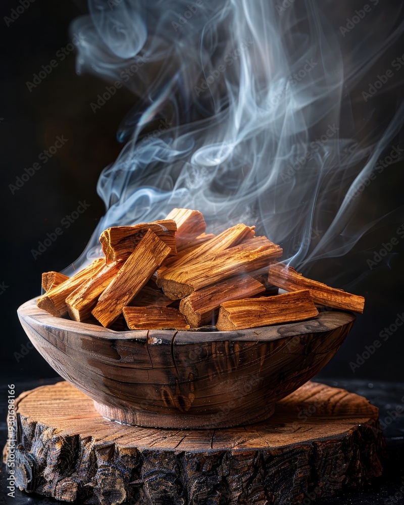 Elegant Oud Wood Chips Emitting Aroma and Intricate Smoke Patterns. #930688166