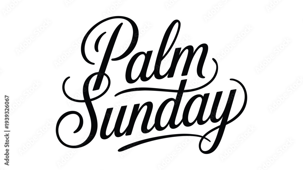 Elegant Palm Sunday Calligraphy Typography Design With Decorative Swashes, Christian Holy Week Religious Celebration Greeting Text Illustration In Stylish Script For Church Banner Poster Card #1939326067