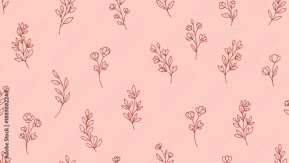 Elegant seamless floral pattern with linear flowers on soft pink background #1889882246