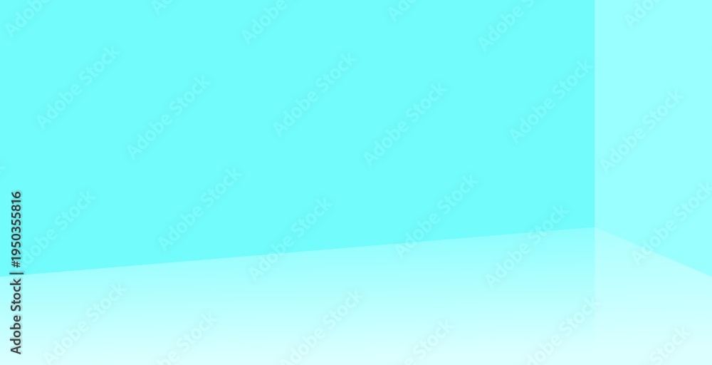 Empty corner of clean blue room. Blank even wall. Polished floor. Azure plain studio. Subtle simple background 3d. #1950355816