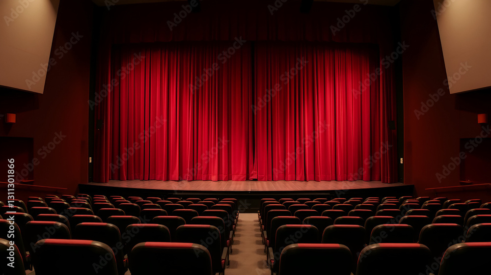 Empty Theater Seats Facing Red Stage Curtains - Photo #1311301866