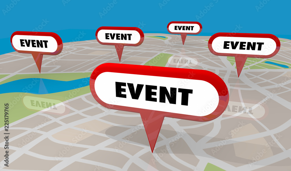 Event Party Conference Meeting Show Map Pins 3d Illustration #225179765