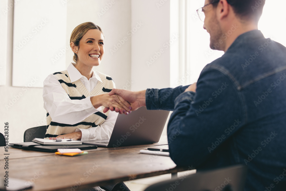 Excited HR manager hiring a new employee #538828326