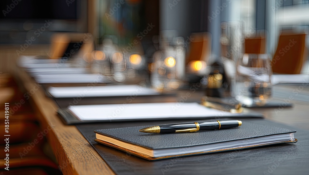Executive meeting space with pen and paper on polished table #1851419811