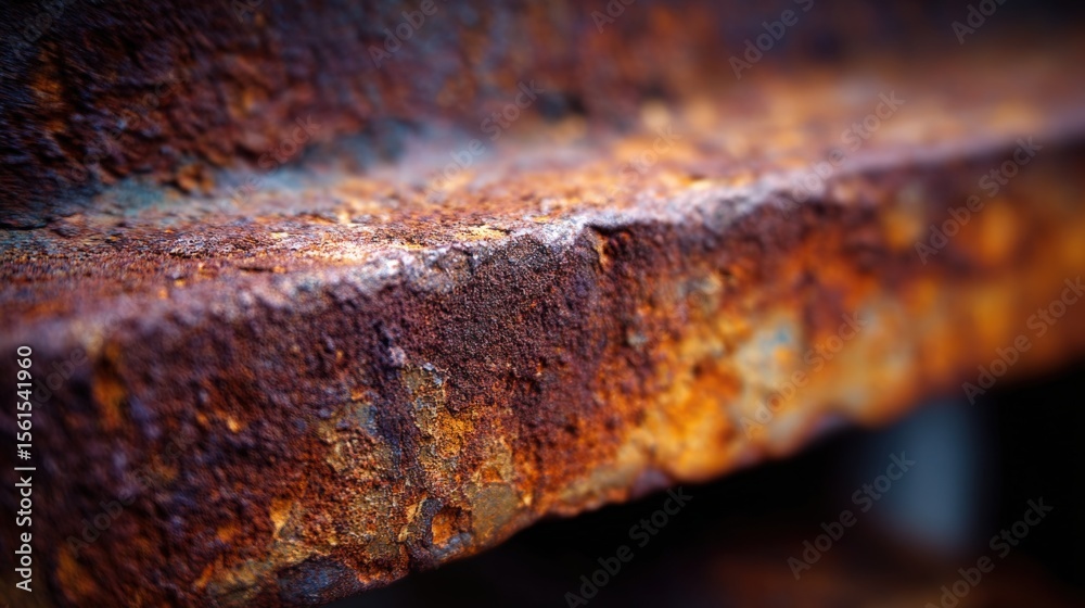 Extreme close up of rusted iron surface with corrosion and weathering textures detail. #1561541960