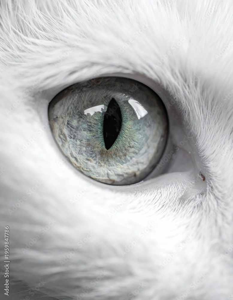 Eye of a white cat, close up, grayish, greenish iris, muted colors #1959847786