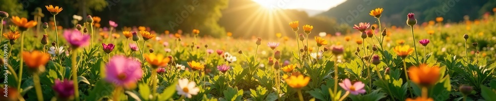 Fading wildflowers in a sun-scorched clearing, biodiversity loss, climate change #1318559930